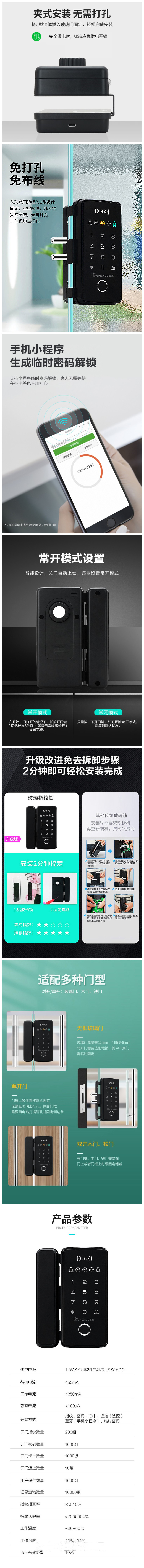 盖卓708免布线智能指纹锁免开孔