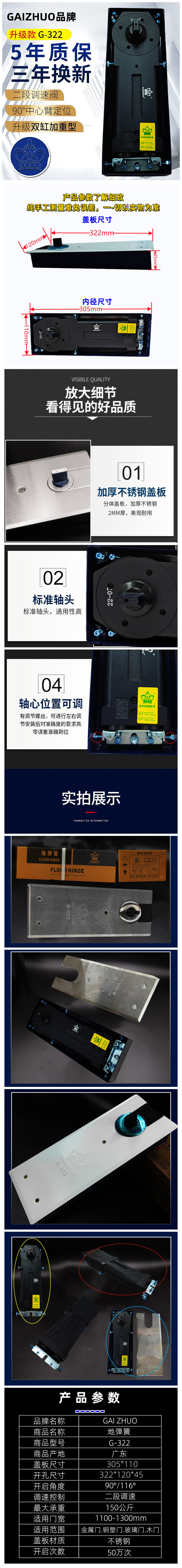 G-322玻璃门地弹簧加重型