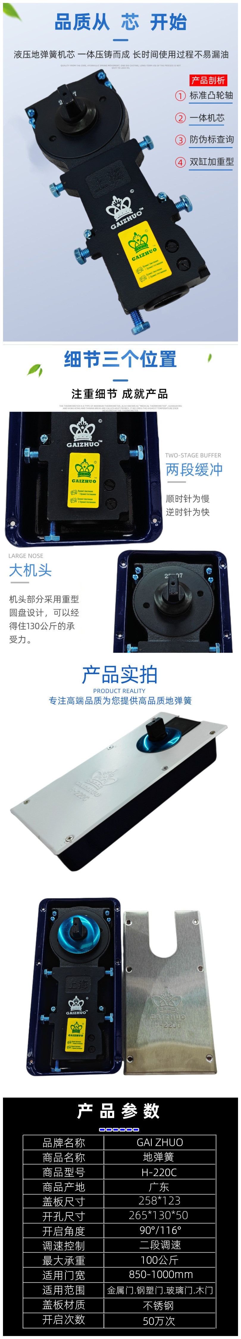 H-220C玻璃门铝合金门地弹簧
